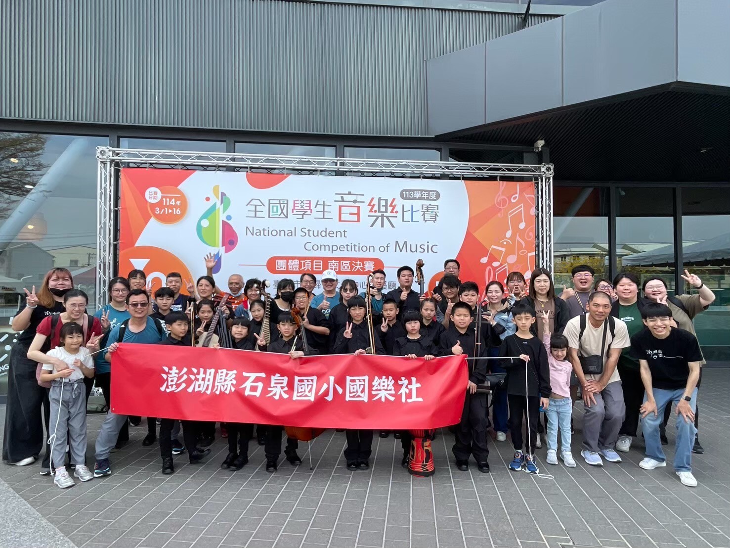 石泉國小國樂團,於民國111年成立團隊,開始利用周三下午時間進行團練,由馬公高中國樂團指導老師許勝文無償到校指導,並邀請家人、學生到校協助各分項樂器之練習。 國樂團在葉明發老師催生下成立,努力尋求經費上之挹注,並透過教育部樂器銀行取得樂器資源,目前在許筠喬老師、許庭瑋老師、盧璻伃老師等人辛苦指導下,已連續在112.113.114年全國音樂比賽澎湖縣初賽獲得絲竹樂優等成績。 國樂團以永續發展團隊期許,在經費、教學人力、樂器補足上持續努力, 以培育未來之音樂人才。